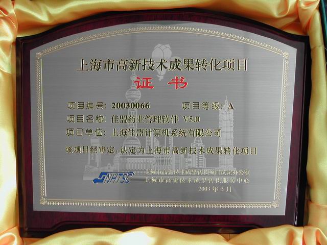 多项产品评定为“上海市高新技术成果转化A级转化项目”